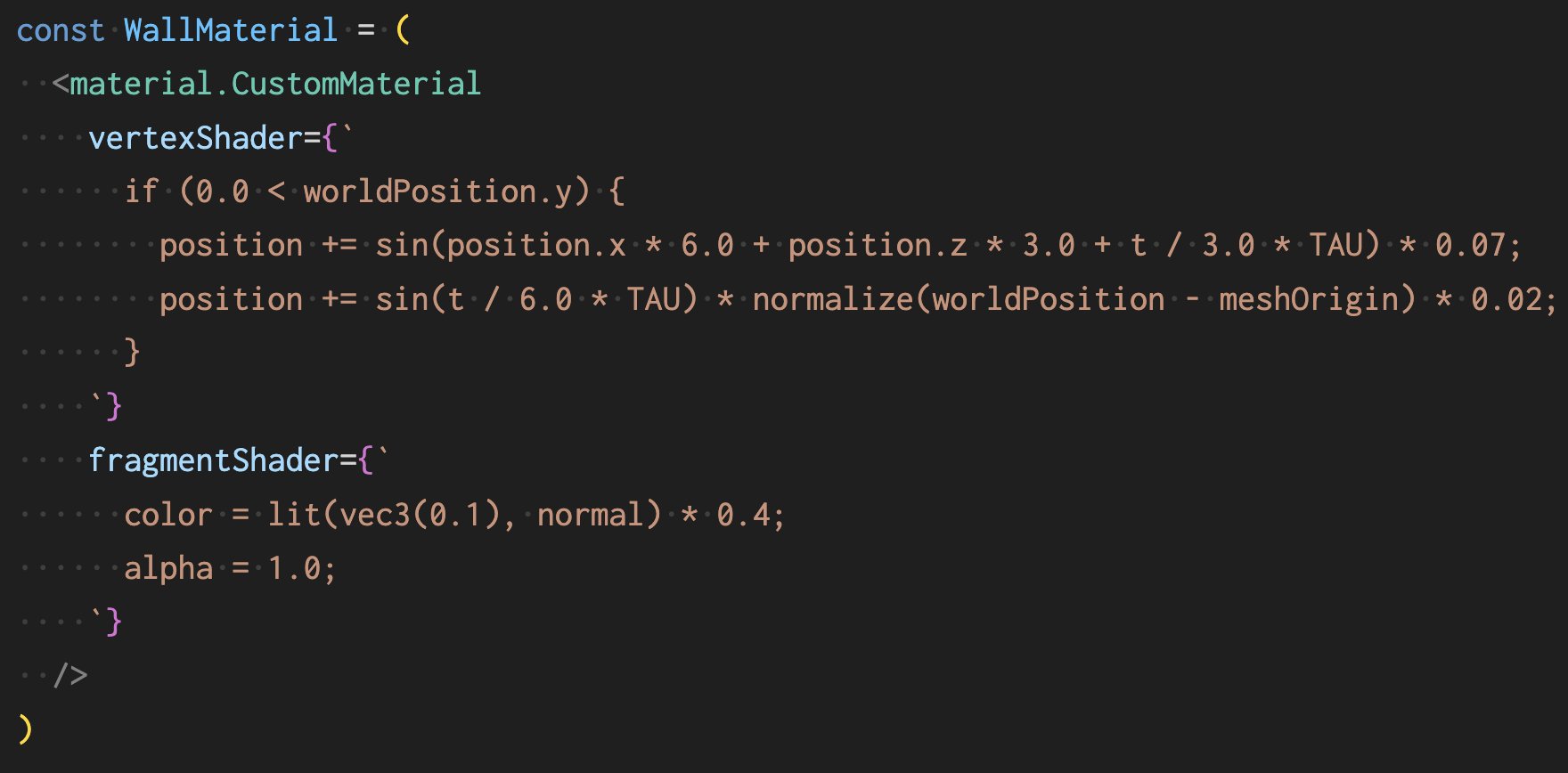 ```react:shader-example const backgroundColor = '#1a1a2e'; const rotationSpeed = 1.0; ```